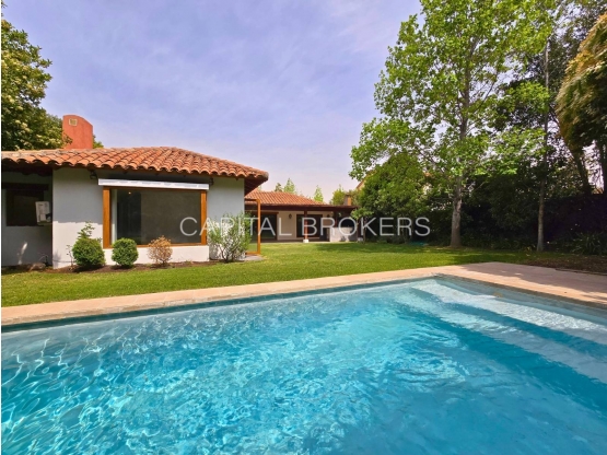 Acogedora casa chilena de un piso, ubicada en excelente condominio. Seguridad 24/7 con accesos controlados, parques, juegos infantiles. A pasos del cole colegio San José. Cercana a laguna de piedra Roja, Clínica Alemana y las Condes.